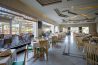 It’s located on the beach. It serves late breakfast, snacks, pizza, tea and coffee with pastries, soft drinks, and local alcoholic drinks.
